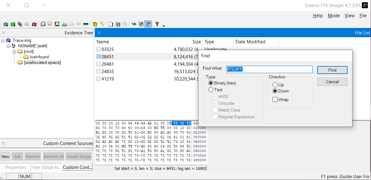 We are given a 50 MB disk image named Trace.img. There are no obvious files in the root. The task is to find what is hidden and recover the flag. The hint suggests a “silent mark,” so signature carving from unallocated space is the likely path.